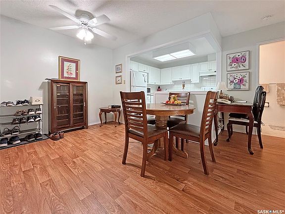 Immaculate top floor, 2 bed, 2 bath condo at St James Place on Cree Crescent in Lawson Heights. This bright unit features many upgrades such as windows and window coverings, newer carpet in the living room and primary bedroom, a newer washing machine, updated kitchen cupboards and backsplash, and newer linoleum in bathroom and laundry room. Very open design with bedrooms and bathrooms on either side of the living room. The 2nd bedroom has glass doors to the living room for potential as a den. Storage on the balcony. 2 year old wall air conditioner. Full bath off the primary bedroom with walk-through closets. One electrified parking stall. The building has a new elevator. No pets. End of October/early November possession date.