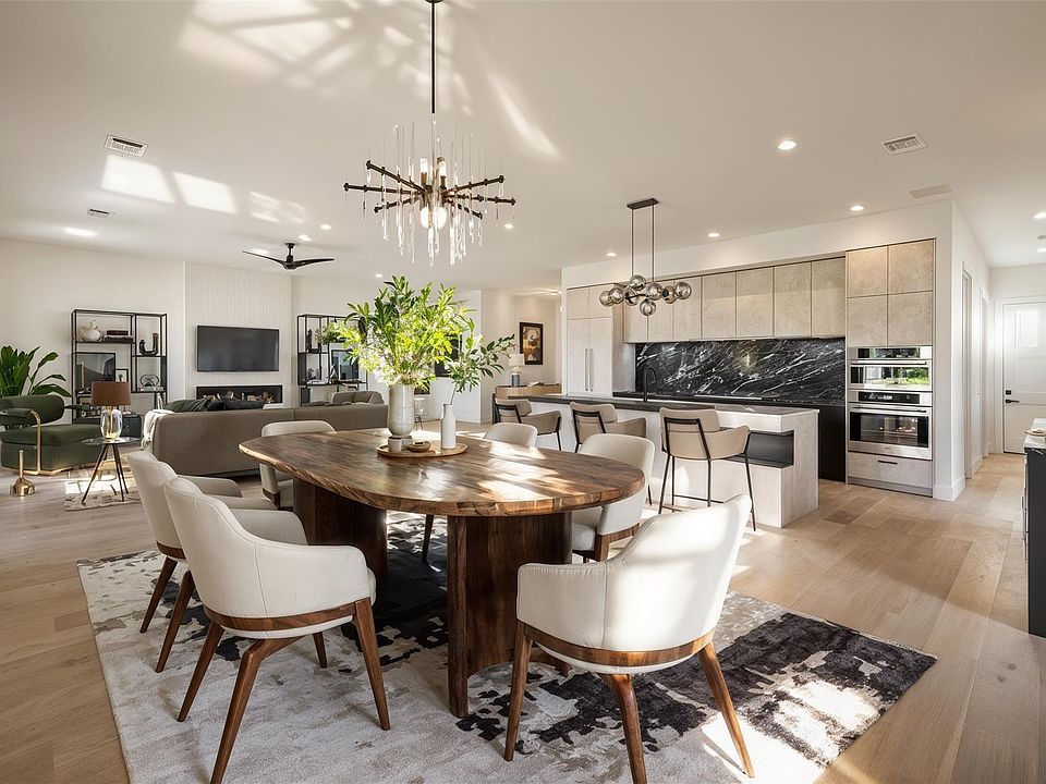 Striking modern exteriorSun-drenched living spacesWide-plank white oak floorsFulgor milano appliancesExpansive covered patioWhite stucco and stoneSleek black metal roof