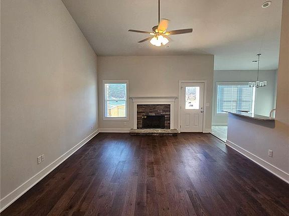 Be the first to live in this amazing four-bedroom, two-bath ranch home with a desirable split-bedroom floor plan, located in a peaceful country setting with wide-open blue skies and pastoral views, including cows grazing in the field next door! This newly constructed home features hardwood floors in the large living room with wood-burning fireplace! Cooking is a pleasure in the large open kitchen with crisp white cabinets, granite countertops, stainless steel appliances and an eat-in area for casual meals. Enjoy entertaining friends and family in a separate dining room! The spacious primary bedroom includes a private en suite with his and her vanities and has a separate garden bath and shower. The bedroom next to the master bedroom is perfect for a guest room or an office! Two additional bedrooms are on the other side of the house and have a shared bathroom. This new ranch comes with plenty of storage space, a washer/dryer room, a double garage, and a deck for relaxing with morning coffee enjoying the pastoral view! You will be bathed in peace and comfort in this beautiful new ranch located near Tanger Outlet, Highway 85, and North Ga. mountains! All applicants will apply through TransUnion Smart Move at a cost of $47. Applicants must have a credit score of 700 +, pass a back ground and credit check. Pets are allowed with a $500 non-refundable pet fee. Only one small, well trained dog (no pit bulls or similar dogs)