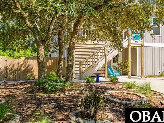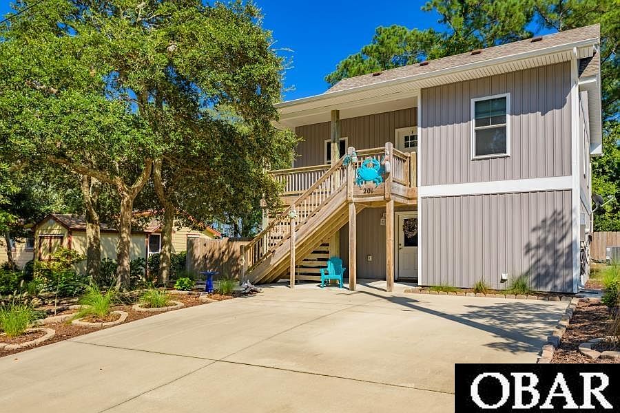 Immaculately Maintained North End Roanoke Island Home. This home is located across from the Lost Colony and is just steps to the Roanoke Sound. With Sound views from your back deck and settled in a quiet neighborhood, this home is perfect for a small family, retired life, or someone looking for a second home getaway. The Outside of the home is beautifully landscaped in the front with a concrete driveway and covered front porch. Around back there is a spacious fenced in yard perfect for the fur babies or the perfect playground for the kids. The back also offers a large patio and covered back porch that is ideal for entertaining friends and family. There is also an outdoor shower just outside the ground floor living area. Inside is move in ready. As you enter the front door there are lvp floors and an open concept kitchen with granite countertops, stainless appliances and plenty of cabinet and counterspace for the chef of the family. The kitchen opens up to the back deck where you can enjoy dinners on the back porch with the view of the sound. Back inside you will find two bedrooms with carpet and a shared bathroom with a tub/shower and tile flooring. Downstairs is a great space for guests with a large bonus room, living area, and full bathroom. The ground level has its own entrance to from the front and back of the home making it easy for guests to come and go. This home has just the right amount of space and is still easy to maintain. Schedule your showing today!