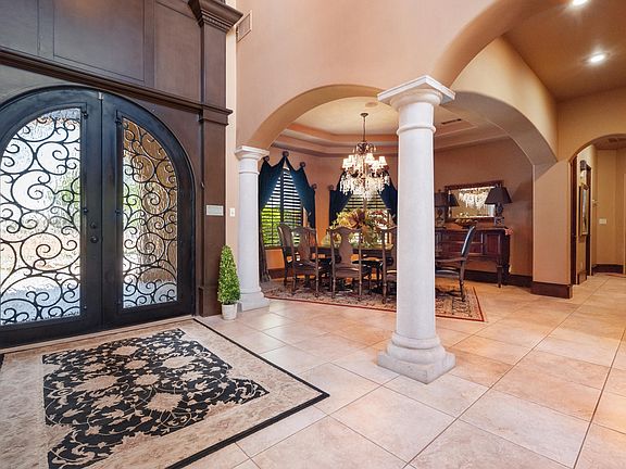 Experience resort-style living in this exceptional two-story home tucked behind a gated entrance and 8' privacy fence. Situated on 2.2 beautifully landscaped acres, this estate is designed for privacy, luxury, and year-round enjoyment. From the moment you arrive, a stunning front-yard fountain sets the tone for the elegance that follows. Inside the main home, a sweeping staircase welcomes you into thoughtfully designed living spaces, including two living areas, formal dining, a dedicated office, and more. With 3 bedrooms, 3.5 bathrooms, and a spacious 3-car garage, in the main home, comfort and sophistication blend with ease. Modern upgrades such as a fresh air system, built-in sound, and Z-Wave smart-home technology elevate convenience and everyday living. The gourmet kitchen serves as the heart of the home and features custom cabinetry, double ovens, a spacious island, and an impressive walk-in pantry. The primary suite is a retreat in itself with a spa-inspired bathroom showcasing his and her closets, a large walk-in shower, jacuzzi tub, and a private sauna. Step outside and the property becomes a destination. The grounds include a rare Hartley Botanical Greenhouse imported from London, perfect for growing, gathering, or hosting intimate events. Just beyond the greenhouse is a charming garden area with its own fountain, adding peaceful ambiance. Resort-style amenities continue with a fully functional outdoor kitchen featuring a fireplace, Lynx hooded gas grill, and cabinets crafted from luxurious bubinga wood. The amenities do not stop there—an elegantly finished pool house with its own HVAC system, full bathroom, and full-size kitchen overlooks the heated saltwater pool and nearby hot tub on one side, and the fully stocked pond with a covered dock, fountain, and waterfall feature on the other. Completing the estate is a massive 3,200 sq ft shop with a half bath and two overhead doors, ideal for additional vehicles, equipment, or hobby space. This property delivers privacy, beauty, and an exceptional collection of lifestyle amenities—creating a one-of-a-kind estate designed for living, entertaining, and enjoying every season. This one is a must-see!