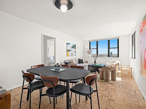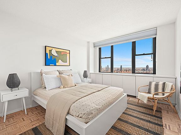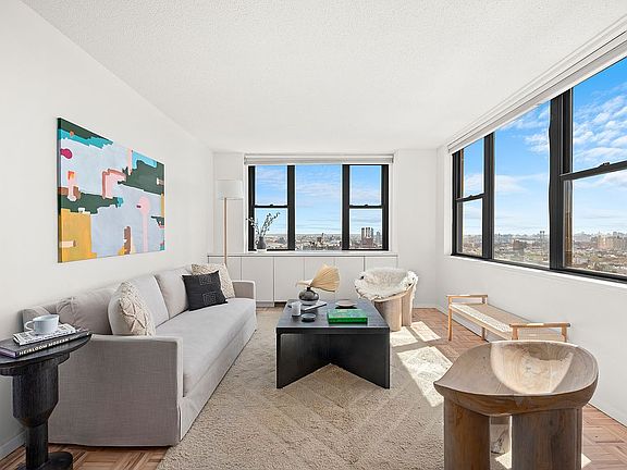Enjoy endless southeast views from the 30th Floor at 201 East 17th. Timeless modern interiors await in this spacious one-bed, one-bath stunner at the coveted Park Towers in Gramercy Park. From the moment you arrive in this high-floor home, you'll be swept away by magnificent light and unimpeded views to the south and east. A long entry gallery with a convenient coat closet opens to a spacious 23 foot living room. Enjoy a generous open, dining and home office areas featuring hardwood floors and massive corner windows. Postcard vistas of the Williamsburg and Manhattan bridges. In the white kitchen, custom cabinetry and new countertops surround updated appliances. Bedroom features a wall of closets and built-in cabinetry. The adjacent oversized full bath completes this home with white tile, and a beautiful vanity. Park Towers is a high-rise cooperative where residents enjoy full-time doorman service, a live-in superintendent, updated common areas, a fitness center, laundry, storage, bike room, an on-site parking garage and a glorious roof deck with simply breathtaking skyline views. Pets, pieds-a-terre, co-purchases and guarantors are permitted with board approval. Electric and basic cable Included in maintenance Bordering the Stuyvesant Square Historic District, this neighborhood boasts the best of New York City's past and present. Enjoy immediate access to Union Square, the Flatiron District and the East Village. Iconic parks surround the area, and fantastic restaurants, greenmarkets, entertainment venues and shops, including Trader Joe's and Whole Foods are a few blocks away. Nearby N/Q/R/W, 4/5/6 and L trains, excellent bus service and Citi Bike stations put the rest of the city within easy reach.