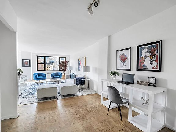 Featuring one of the best and biggest one-bedroom layouts at coveted Quaker Ridge, this home offers stunning high-floor views and a fantastic flexible layout with great storage. Bring your imagination and transform this original-condition Junior 4 to meet your exact needs. Currently configured with an expansive living room leading to a corner dining area and galley kitchen, there are myriad options for transforming this highly adaptable B-line home. Add a second bedroom or home office by closing off the alcove, and you'll still have a generous footprint for seating and dining. Open up the kitchen to add an island and breakfast bar. The king-size bedroom provides plenty of room for additional furniture, and three large closets ensure storage will never be a concern. Throughout the spacious and sunny home, oversized windows capture stunning natural light and skyline views to the south and west. Quaker Ridge is a classic white brick postwar co-op known for its excellent financials, low monthly maintenance and a prime location just steps from Gramercy Park. Residents of the pet-friendly building enjoy full-time doorman service, a live-in superintendent, laundry, bike storage and a residents-only parking garage with direct access to the building. Quaker Ridge allows co-purchasing and gifting but does not permit guarantors or pieds-à-terres. Please note, there is a monthly energy charge of $137.56 which adjusts quarterly. There is currently a monthly assessment of $63.68 through the end of 2022 and an additional special assessment of $306.59 per month beginning in June 2022 through the end of 2022. Located just minutes from Union Square, the Flatiron District and NoMad, this home is at the heart of exciting Manhattan living with abundant shops, restaurants, services and outdoor space at every turn. Union Square and Madison Square Park put a dog park, greenmarkets and year-round events mere blocks away, and foodies will love the proximity to Whole Foods, Trader Joe's, Eataly and numerous Michelin-starred restaurants. Access to transportation is fantastic with 4/5/6, N/Q/R/W and L trains, excellent bus service and CitiBikes nearby.