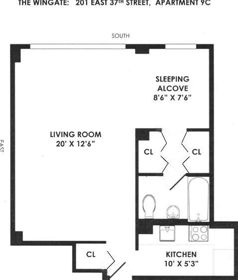 When you step into this graciously proportioned alcove studio with crown molding, Three (3) Large Closets, Newly Renovated Bath and Spectacular Mid-day Sun, you will feel immediately compelled to kick off your shoes and make yourself at home. Relax and enjoy: 1). A Spacious Living Room well suited to entertaining with a Distinct Dining Area large enough to comfortably seat 6 or more. 2). A full wall of south-facing windows providing great sunlight by day and drama by night. 3). A Distinct and Windowed Sleeping Alcove large enough to fit Queen size bed. 4). A Dressing Area with Two DOUBLE Closets leading to a Newly Renovated Bathroom. 5). A functional kitchen that can easily and inexpensively be equipped to serve a serious cooks highest standards or left simply as is. The Wingate is a financially fit, low maintenance luxury co-op with Full-Time Doorman, Resident Manager, Well Appointed Rooftop Deck, Central Laundry Room (with the best rates in town), Bike & Trunk Room, Caged Storage (when available, for a reasonable fee) and Package Room for deliveries. Conveniently located near an AMC Loews mega Multiplex Movie Theater, NY Sports Club, downtown hot spots, countless restaurants, bars and shopping options including: POD 39 Lounge, RARE VIEW Rooftop Bar, Joshua Tree, Bareburger, Fairway Market, Shake Shack, Rio Grande, Wolfgang Steakhouse and Sarges Deli. Central location near Grand Central Station, Lexington Avenue Subway, Uptown/Downtown/Crosstown Buses and the Midtown Tunnel makes travelling the city and leaving the city easy and hassle-free. Pied-a-Terres, Guarantors, Co-Purchases and Parental Purchases permitted. Very sorry, NO DOGS allowed but Cats are quite welcome. Call or email Robin Portnoy to schedule private showing: 917.865.9429; rportnoy@maxwelljacobs.com