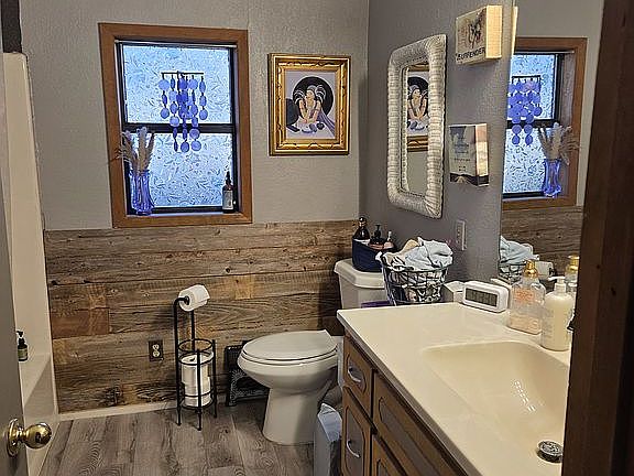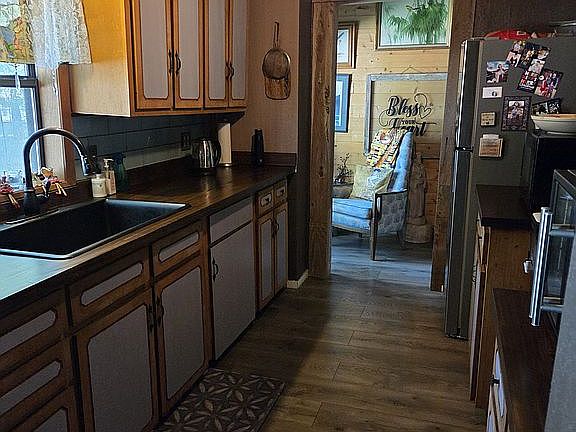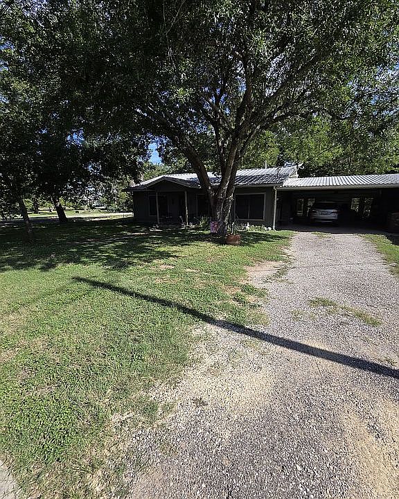 Cute Cottage type home, open floorplan with arches and barnwood casement and wall accents. Glass French doors to bring more light into living area. Laminate floors thruout. Property is a block from courthouse and restaurants and shops giving it commercial potential. New ac/heat pump, new tank less electric water heater, new expanded electric box. House is pier and beam and slab with p/b just releveled. Oversized carport with two sets of French doors leading to backyard. Over 700 sf shed with slab foundation which has been partially finished out with birchwood walls, electric, window ac/heat. Lots of potential for small living in cute shed. Back part of property has potential of being separate lot with its own entrance to avenue G. So much investment potential.