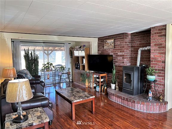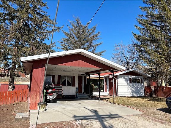 Omak - Walking Distance to Restaurants, Movie Theaters, Retail, and Grocery - Home features 2 bedrooms/2 bathrooms, large living room with pellet stove on unique brick hearth and huge slider out to covered back patio, dining room, kitchen including appliances, and laundry room with utility sink/.5 bath plus outside entrance. Distinctive wood shudders in bedrooms. Cedar lined closets. Basement includes tons of storage and work shop area. Storage shed in back yard stays. Mature landscape. Fenced back yard. Large lot. Attached carport with built-in storage cabinet. $224,900 H-3020/MLS1901309