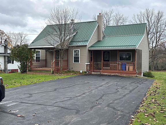 WATERFRONT LIVING!!! This Cape Cod-style home has plenty to offer. The spacious kitchen features an abundance of solid wood cabinetry, two pantries, a center island, and a range of appliances. The dining area is off the kitchen. The living room has a wood-burning fireplace with a stone surround. There are doors off the living room to the back deck. Sit and enjoy your morning coffee here, and the beautiful view of the river. There are two more covered decks off the front of the home. A convenient bedroom and roomy bathroom on the main floor are always a plus, which this home has. Upstairs, you will find the second bedroom. It is quite large... the present owner had used it as two bedrooms at one time. The walk-out basement offers the third bedroom and the second bath. (Bedroom does need flooring). This home has Central Air, a new furnace in 2018 just serviced 10/2025, a metal roof, vinyl siding, updated vinyl windows (including the basement), a 200 amp electrical entrance with a sub panel in the basement bedroom, and a 2-car paved driveway. Be sure to get this one on your list to see right away!