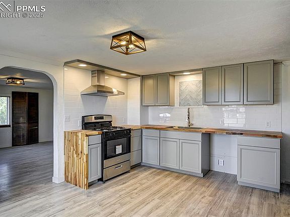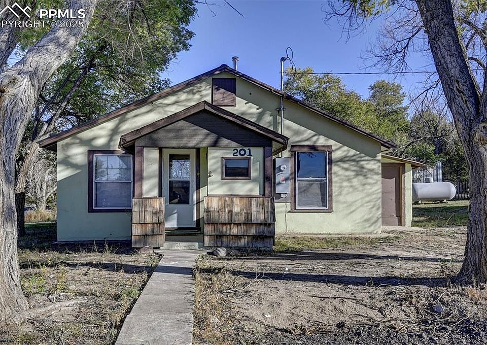 This beautifully updated stucco home with a durable metal roof offers modern amenities while maintaining classic charm. Situated on a large, tree-lined corner lot, this 2-bedroom, 1-bath property is move-in ready with a host of brand-new features throughout. Step inside to find new flooring throughout, including laminate in the main living areas and new carpet in the bedrooms. The spacious living room boasts a large picture window, filling the space with natural light. The large eat-in kitchen has been fully remodeled with new cabinets, countertops, tile backsplash, sink, and gas range, complemented by stylish laminate flooring and new lighting. The completely renovated bathroom features a new tub/shower with tile surround, vanity, and toilet. Fresh paint, new drywall, and molding in select areas add a clean and modern feel. Electrical upgrades include new wiring with grounding, updated electrical panel (interior and exterior), and GFCIs in kitchen and bath. You'll also find new plumbing, new gas lines with two regulators, and a new furnace and water heater for comfort and efficiency. The propane tank is owned and will transfer with the property. Additional highlights: new doors and light fixtures throughout, laundry room conveniently located off the kitchen, unfinished basement offers excellent storage or potential for future expansion, and a detached two-car garage includes a mechanic’s pit—perfect for car enthusiasts or hobbyists. Don't miss this opportunity to own an updated home with plenty of space inside and out!