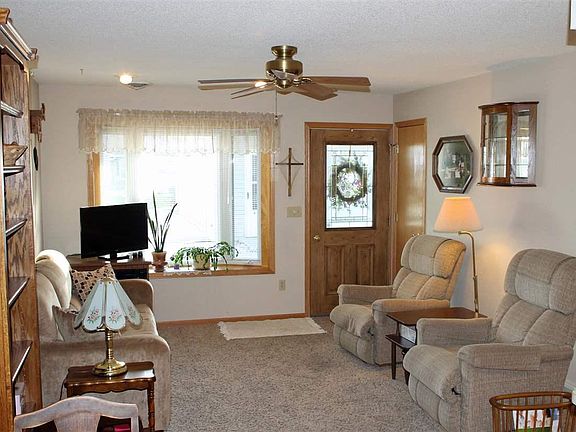 Fabulous 2 bedroom, 1 bath, ranch condo with heated attached garage located close to parks and downtown area. Open floor plan with nice size bedrooms, handicapped bathroom and separate laundry room. Private backyard patio with side and back yard lawn space. Association fee of $50 per month covers lawn care, snow removal with exterior upkeep and maintenance. Very affordable with small town living at its best.