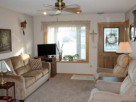 Fabulous 2 bedroom, 1 bath, ranch condo with heated attached garage located close to parks and downtown area. Open floor plan with nice size bedrooms, handicapped bathroom and separate laundry room. Private backyard patio with side and back yard lawn space. Association fee of $50 per month covers lawn care, snow removal with exterior upkeep and maintenance. Very affordable with small town living at its best.