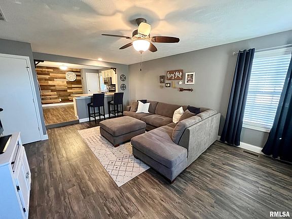 Beautiful, Charming Move In Ready 4 bed-2 bath home nestled on private street in town! Home boasts open floor plan w/luxury vinyl flooring throughout the Living Room, Foyer & Kitchen. HUGE Liv Rm with plenty natural light & furniture space. Kitchen offers stainless steel appliances, breakfast bar, pantry, plenty cooking space & gorgeous white cabinets. It features an amazing wooden focal wall where office or additional dining can be! Charming formal Dining Room just off the Kit. The bedrooms are very spacious ~all with carpet and large closets! Master has ensuite, walk out slider to backyard, and a large walk-in closet! Full bath is ADORABLE w/ shiplap, WOW Flrs & laundry ... its large and vibrant! Backyard has a fire pit area, play space & shed! This is one you don’t want to miss!