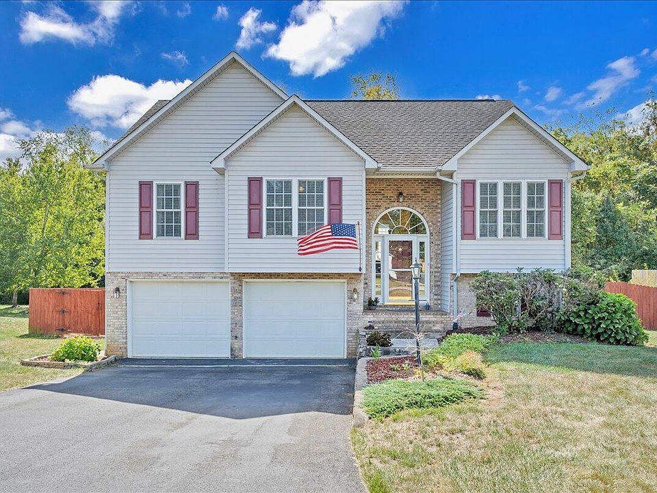 Location, location- Brookfield subdivision! Welcome to this lovely split foyer with amazing mtn views offering 3 bedroom, 3 full baths. Lr with gas fp, cathdral ceiling, hw floors, eat in kitchen with many windows to soak in the view, primary suite w/ garden tub,stand up shower, 2 WIC,laundry near bedrooms, large deck with privacy and fenced in yard, lower level offers large office space/4th bedrm, rec room area with wet bar, full bath, storage area, large 2 car garage w/ work area /closet, family room leading out to the nice covered patio space, storage shed with plenty of room for your children or animals to enjoy! Updates include newer gas hwh, new carrier a/c unit 2021, driveway resurfaced 2020,newer microwave. Tour today!