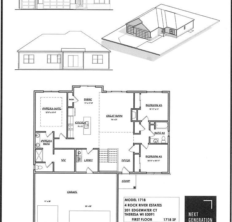 Estimated Completion Date March, 2026...Quality New Build by Next Generation Construction in Rock River Estates. Split Bedroom Ranch w/ 3-car attached garage! Open concept w/ White doors & Trim throughout...Large Great room w/ Vaulted ceiling! Nice Eat-in kitchen w/ Separate dining area, Center Island, Quartz counters, Corner Pantry, Stainless appliances & Soft close cabinetry! Main level laundry/Mudroom! Primary suite w/ Private bath, Walk-in closet, Double vanity & Walk-in shower! Lower level is Studded, Insulated & Roughed-in for future bath plus Egress window for possible 4th bedroom. Great curb appeal & Location! Lot #4