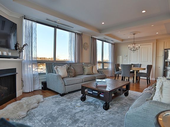 Imagine yourself in this beautiful upscale corner unit at Elliott Landing, centrally located close to Commuter Rail, downtown restaurants & shops, with easy access to Rt 128. You'll love the flow of the open concept, bright and sunny living, dining and kitchen spaces - ideal for entertaining. Your amazing kitchen, which every cook will love, features a large kitchen island, stainless steel appliances (including a gas range), quartz counters, gorgeous glass subway tile backsplash, wine/beverage fridge, & tons of storage space. All windows are floor to ceiling with top down/bottom up shades. The master has a huge walk-in closet and luxurious bathroom with soaking tub and walk-in shower. Other features include recessed lighting, tray ceiling, gas fireplace, same level assigned parking, balcony, & storage area. Common areas include outdoor areas with grills & dog walk area, function room, fitness center, and billiards. HOA fee includes heat, AC, hot water and gas for cooking and dryer.