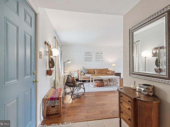 Your 3-bedroom Marlton Village home awaits. Be welcomed into an entry with an easy maintenance ceramic tile that continues through the heavy traffic hall and into the kitchen. While richly finished, scraped hickory hardwood flooring adds a cozy and updated feel to the home's family room and back dining room. The family room is nicely proportioned and features a designer accent wall along the back that adds a subtle and fresh feel to the home. The family room is flooded with natural light from the large windows in front and back of home creating an open feel. The kitchen features light wood cabinetry with soft close drawers and cabinets, a glass tile backsplash adds color and the chocolate countertops add the contrast. The kitchen also features a pantry so there is plenty of storage throughout the kitchen for every day living and entertainment. The kitchen has a larger and brighter feel than expected thanks to the pass through and opening to the dining room with sliding door to the patio, perfectly convenient for grilling. The dining room can also double as a home office space or playroom if needed as the family room can also acommodate a table, but it is a lovely room off the kitchen and features the same hickory hardwood as in the family room. An updated and beautifully appointed half bath completes this first level of living and social spaces. Heading up the wood-tread stairs to the private living area of the home you will find three bedrooms and a nicely appointed full hall bath. The primary bedroom offers a soft on foot carpet, lots of closet space and is a generously proportioned room and includes a private sink and mirror area for convenience in starting and ending your day. The other two bedrooms are well proportioned with one featuring an easy maintenance laminate wood flooring and the other with carpet. A laundry with storage is located for ease within the second floor hallway. The back of home does not look directly onto another unit creating a unique sense of privacy from within the home and the patio. Off-street parking is at the front of the home as are guest parking spaces. Marlton Village is desired for its walking paths throughout the community as well as its pool, club house and tot/playground lots and its location to all of the areas best shopping, dining and access to major routes north or south.