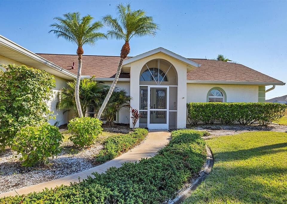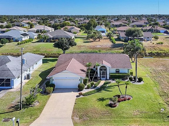 Discover this inviting 3-bedroom, 2-bath pool home located on a freshwater canal in the desirable Pinehurst neighborhood of Rotonda West. Designed for comfort and functionality, the open floor plan features cathedral ceilings and an easy flow between the living, dining, and kitchen areas—perfect for entertaining or everyday living. The kitchen offers granite countertops, a breakfast nook overlooking the covered lanai and pool, and plenty of storage. Enjoy seamless indoor-outdoor living with four sets of sliding glass doors that open to the large pool area, providing beautiful views and excellent cross ventilation through screened front and rear entries. Additional highlights include three walk-in closets, an inside laundry room with utility sink and pantry closet, and a 20' x 24' two-car garage. The spacious screened pool cage extends the full width of the home, creating a perfect space for outdoor dining and relaxation. This home offers convenience, value, and the sought-after Florida lifestyle in one of Rotonda West’s most peaceful neighborhoods. Low HOA Fee, No CDD and an X Zone. Call today-make it yours.