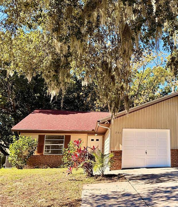 Be the first one to enjoy the NEW designer remodeling in this beautiful turnkey home! This half-duplex in a nice, quiet neighborhood with no HOA (and low property tax!) features: a spacious open floor plan with abundance of day light, 2 bedrooms, 2 bathrooms (each with bath tub / shower combos – so family friendly!), an oversized one car garage with electric door and clickers, and with ample space for washer and dryer. Large and sunny screened-in, weather proof, tiled patio! New 2020 roof ($8K feature), and brand new 2-ton central A/C (October 2025, a $7K feature, with new: heat pump, air handler, thermostat, and hurricane concrete pad!). The $50K interior remodel features: matching, luxury waterproof vinyl flooring throughout ($10K feature), a full set of 4 brand new matching stainless steel appliances ($2.5K feature, still in blue plastic that new homeowners get to unwrap themselves!), a pantry, an open-concept kitchen with a large peninsula and a generous overhang that fits 4 barstools, marble-look “Wilsonart” brand Premium Laminate countertops. No detail was overlooked, including a double-sink, and designer light fixture, hanging over a pull-out luxurious kitchen faucet! Mirrored cabinets in both bathrooms are built in, for additional shelving and storage! Designer waterfall faucets, gorgeous LED light fixtures, chrome finishes, oversized shower heads, generous closet space! Even the interior doors, door knobs, and vent grills are brand new, and so are baseboards, toilets, and coded locks! Bath tubs are so new, they still have factory stickers on! Bathroom exhaust fans are ultra quiet. A highly desirable home construction type: built-on-site, wood frame with metal siding, with concrete block fire-and-sound-proof wall between halves of duplex! Investors, this home rents out for $1,900/mo! Make your home ownership dream come true in the charming Lake County!