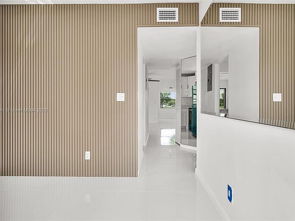 Fresh paintWhite quartz counter-topCorner of first floorGarden and water viewsWhite kitchen cabinetrySeparate dining areaLarge tile flooring