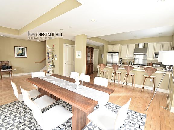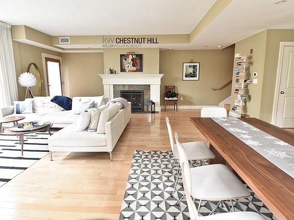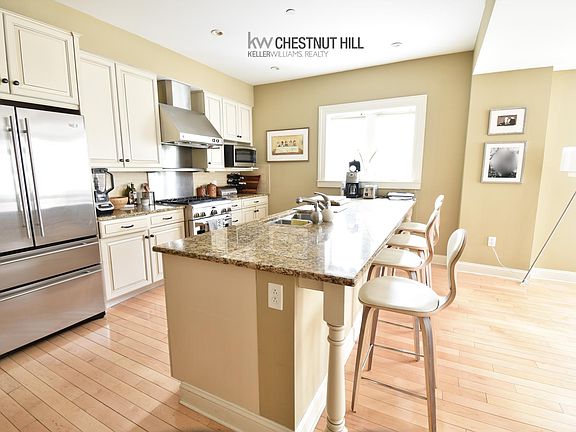Brookline... Freeman St... Spectacular Converted Church Three-Level Townhouse with no expense spared in its renovation. This complex is lushly landscaped and only minutes to the C Line, Longwood Medical and Coolidge Corner. First level consists of an oversized sunny living room with gas fireplace, hardwood floors, high ceilings, many windows, 1/2 bath and gourmet open kitchen with stainless steel appliances, custom cabinetry, gas cooking/ventilation hood and enormous breakfast bar. Second level consists of two huge bedrooms including master bedroom with luxurious en suite bath and second full bath off of hallway. Top Floor consists of third bedroom, third full bathroom and additional room with cathedral ceilings and wet bar. Large Private Deck off of this room. Central Air. Washer/Dryer in the Unit. Two Garage Parking Spots Included! Pets Considered! 2365 sq. feet! One Month Fee. Available 1/1 for $6600.