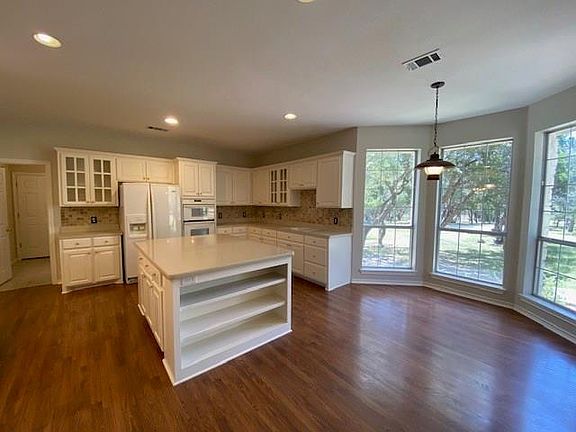 PLEASE 1 HOUR NOTICE: Country living on 5 acres, great 1 level Texas stone home with huge covered front porch, back covered porch, hardwood floors, porcelain tile floors & carpet in bedrooms only, oversize laundry room, country kitchen has white cabinets, center island, breakfast area, breakfast bar, recessed lights, crown molding, large master suite with sitting area, master bath has separate vanities, jacuzzi tub, separate shower, walk in closet, study/office with built in shelves and more.