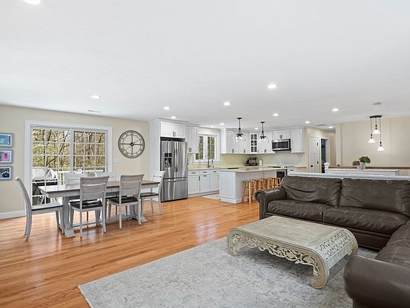 Welcome to this charmingly renovated home nestled in the serene town of Boxford. What appears modest from the outside is actually much more expansive within, offering a seamless blend of modern comforts & timeless style. The open-concept layout creates an airy ambiance, perfect for relaxing & entertaining. Sunlight pours in through large windows, illuminating the gleaming hardwood floors & highlighting the thoughtful details found throughout the home. The heart of this home is undoubtedly the stunning gourmet kitchen with high-end appliances, custom cabinetry, & quartz countertops which is open to the large dining area & cozy fire placed living room. A spacious deck offers serene views of the surrounding landscape. Large bedrooms including an enormous main suite with walk-in closet & spa-like bath. The lower level includes a mudroom with garage access, laundry room, 1/2 bath & a cozy family room. Don't miss your opportunity to make this exquisite, move-in ready property your new home.
