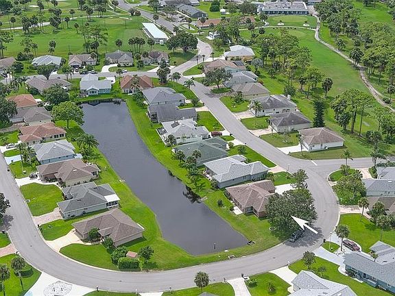 Outstanding, Real Brick over Concrete Block construction home on tranquil pond in quiet golf community awaits you! Split-Bedroom plan and Open Floor Plan with vaulted ceiling and separate Florida Room under the main roof of home. BRAND NEW Kitchen Appliances and 2022 A/C system. 2015 roof has plenty of life left . Spacious waterfront Breakfast Nook off of kitchen area, A/C laundry room, storm shutter system, double pane windows, attic fan, and the hall bath with access to rear yard are but a few of this home's offerings. Primary bedroom has walk-in closet and ensuite bath that features twin sinks, garden tub and separate shower. Nice high, corner lot features sweeping circular drive. Hurricane Ian did not impact this home, at all, not even water on the street. Nestled between 2 golf courses in theis golf-cart-friendly community, and a heated, community pool is available by optional membership and purchase of a pool certificate. Central location is close to everything - Historic Canal Street shopping, dining and art galleries, as well as eclectic Flagler Avenue and the beach are but a short drive away. Affordable HOA annual dues of $350. A great neighborhood to walk, jog or ride your bike, make it your home!