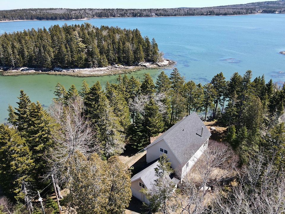 Seaside contemporary-style home nicely sited along the shoreline of stunning Dyers Bay in Steuben. A great place for a summer retreat or suritable for year-round living. A darling 2 bedroom cottage with a 500 sq. ft. loft offers an area for visiting guests or would make a very nice office space of studio. Nicely landscaped featuring raised bed gardens and a fenced-in pet area on the west side of the house! The attached garage has an unfinished room above and could be converted into additional living space. Shared ownership with fellow Goods Point residents in a portion of Fish Island provides a wonderful retreat for swimming at the beach or other waterfront activities.