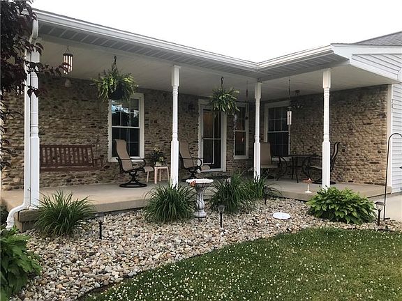 Charming three bedroom ranch on a level, nicely landscaped acre+ country setting in a cul-de-sac neighborhood. Only 23 years old with a newer roof, furnace,central air, central vacuum system. Excellent condition with vinyl and stone exterior. Inviting front porch, enjoy many a night relaxing as you truly did find peace and tranquility. New concrete sidewalks in 2016. The large asphalt driveway allows for many guests. Light and bright kitchen with lots of cabinetry and ceramic tile and new backsplash. Master bedroom is generous in size with an ensuite bath featuring walkin shower. A spacious familyroom room in the basement with a custom brick bar. Unfinished area is large and waiting to be completed for additional living area. Just minutes from Slippery Rock University, Rt. 8 and Rt.79. Radon system in place. Huge rear yard for summertime fun.