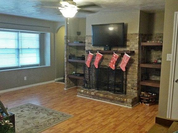 NEED AN AFFORDABLE AND SPACIOUS HOME IN A QUIET NEIGHBORHOOD? THIS IS THE HOME FOR YOU. THIS BRICK HOME FEATURES WOOD LAMINATE AND TILE FLOORING, NICE NEUTRAL PAINT COLORS, UPDATED BATHROOMS AND UPDATED KITCHEN. ONE BEDROOM IS A CONVERTED GARAGE. 4 GOOD SIZED BEDROOMS, KITCHEN HAS GRANITE TILE COUNTERS AND CUSTOM WOOD CABINETS. REFRIGERATOR STAYS, STAINLESS STEEL APPLIANCES. GAS STOVE. ISLAND WITH BAR SEATING. LARGE PANTRY. UTILITY AREA IS IN A CLOSET BESIDE THE KITCHEN. HOME HAS DOUBLE PANE WINDOWS. OUTSIDE PATIO FOR YOUR COFFEE TIME, GRILLING, AND HANGING WITH YOUR FRIENDS. PATIO AREA HAS A PRIVACY FENCE WITH A GATE LEADING TO THE GRASSY SIDE YARD.
