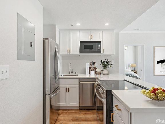 Spectacular views from this gorgeous 1BR. Beautiful remodel, just completed, w/ gourmet kitchen, quartz counters, custom cabinetry, stainless appliances, laminate wood floors, new paint & more! All brand new - Move right in! Washer/dryer in unit & one car parking. Bldg amenities: 24 hr lobby staff, mgr/maintenance staff, fitness/weight rms, sauna, outdoor pool/spa, racquetball crt, 2 gardens w/ bbqs, bike storage, Luxerone package delivery. Pet policy: 25 lb limit: one dog or 2 cats. Near frwys, public transport, sports stadiums, downtown Ferry Bldg, world class dining. Fantastic South Beach/downtown living!!