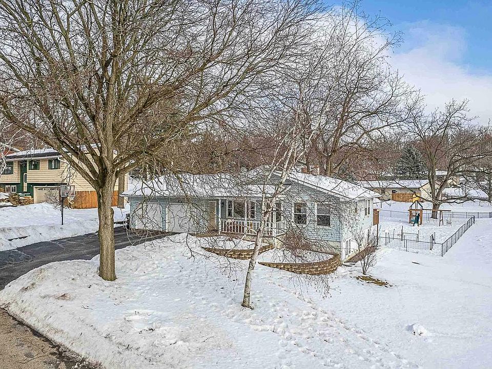 Lovely on the inside and out home in the heart of Mount Horeb! Walkable to downtown, few minute drive to Stewart Lake County Park, and quick commute to Madison. This home boasts an oversized fenced in corner lot, with no sidewalks, and plenty of mature trees. The garage is 2 stall, but has tons of extra space in back, and clean attic above for more storage. The interior offers beautiful natural light, character with the hardwood floors and solid core doors throughout. The main level also has the laundry off of the garage with cubbies and space to fold. Lower level has walkout, work out/office space, movie area, and a very big bedroom to offer many uses. Current owners use basement bedroom as their primary but bathrooms offered on each floor give you options! Schedule your showing today!