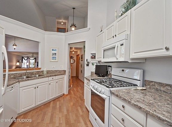 One of a kind Lake Hills town home. Located on a corner lot, this ranch style town home offers features you can't find in any others. Incredible unobstructed lake views and a huge private deck with gazebo is just the start of what you will find. Interior features include beautiful vaulted ceilings with skylights and an open floor plan perfect for entertaining, finished basement rec room, and private second floor bedroom suite with full bath. Originally designed as a three bedroom unit, this home was modified to provide larger living space. Built with many upgrades this home features include crown moldings, tray ceilings, additional cabinetry in the kitchen, and custom fireplace mantel to name a few. Recent updates include new furnace & A/C (2015), kitchen appliances (under 5 yrs), kitchen counters (2 yr), & water softner (1 yr). This home is truly special , impeccably maintained , and move in ready!