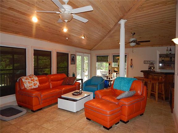 Secluded, private, quiet home on 6+ acres with creek. New master suite was added in 2014 with a private screened porch off the master/added in 2015. Master suite provides a large sitting area adjacent to the master bedroom, walk in closet, huge bathroom with separate shower and garden tub on tile floor. Each bedroom has a private bath. Amazing sunroom features tongue & groove wood cathedral ceilings, a rock wall focal point and a wrap around partially covered deck. There is approximately 1200 Sq ft of decking. The stove was replaced in 2016. The 6 acres is mostly wooded but there are some cleared areas that can be fenced and used as pasture. The two car insulated garage has been used as a bonus room for teenagers by adding portable heating and air units. If SQ FT is important, please have buyer's agent verify.