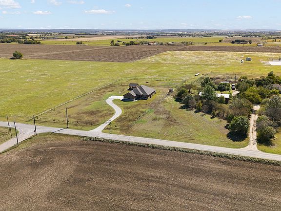 Wide open spaces surround this 4 bedroom custom home for your large family. Electric gate leads to 5 acres in Grandview ISD. Wrap porch around two sides, back patio overlooks pool, wide open spaces or watch big screen TV. Detached pavilion has electric ready for outdoor kitchen or just more space to entertain or relax. Pipe fencing for your fur babies out front, cross-fenced to raise your FFA or 4H animals, and hay pasture in back keeps taxes ag exempted. Grandview ISD. Check room sizes. So many possibilities in this beautiful home. Call it yours today. Ready for immediate occupancy.