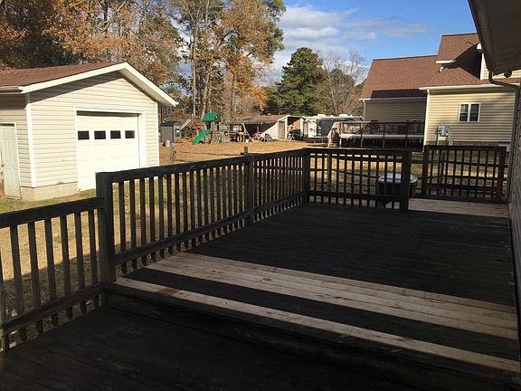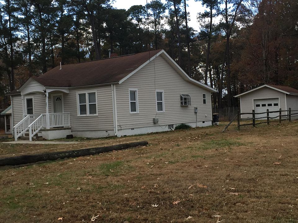 This quiet home is located on a private lane. It is a 3 bedroom 2 bath house with a large eat in kitchen, large living room, master bedroom with master bath. The second and third bedrooms are good size rooms. The second full bath is in the central hallway.There is also a mud / laundry room off of the kitchen with washer dryer. Newly painted, new rugs in the bedrooms and a new energy efficient HVAC system just installed ( electric AC and gas Heating). Gas hot water heater. Pictures do not show washer and dryer. Large attic for storage, huge deck and a detached garage. Sits on a 1/2 acre lot. Renter pays utilites