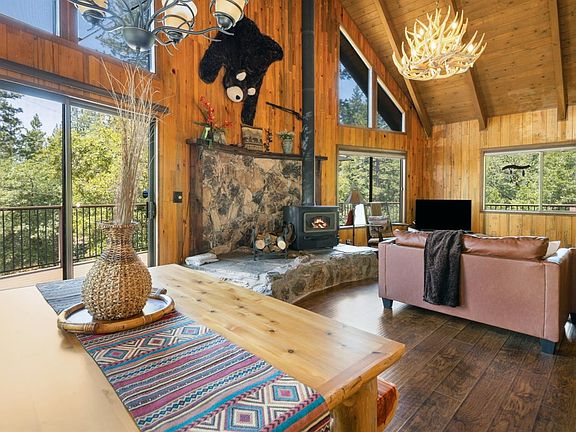 Gorgeous, artist inspired, updated chalet & fully furnished with custom made to order, Amish built quality furniture that is one of a kind. This beautiful cabin is surrounded by tranquility at the edge of the Stanislaus national forest and 5 miles from Arnold & about 7 miles to Murphys. Featuring an open floor plan & vaulted open beam ceiling, newer flooring throughout,new light fixtures, new painting interior/exterior, an updated kitchen with a new refrigerator & knotty alder doors. The gorgeous new fireplace mantle surrounding the grand hearth is made from redwood which was salvaged from an old water tower. Large mud room with laundry and office area. The sunset view from the spacious new trex deck is just spectacular. The property is private and features a gazebo for your family to enjoy outdoor dining. There is a great sub area for storage that could easily be transformed into a game room or workshop. Plenty of parking for at least 6 or more. Ideal location off of highway 4 for easy access to skiing in Bear Valley, wine tasting and shopping in Murphys or enjoying one of the many beautiful lakes in our area.