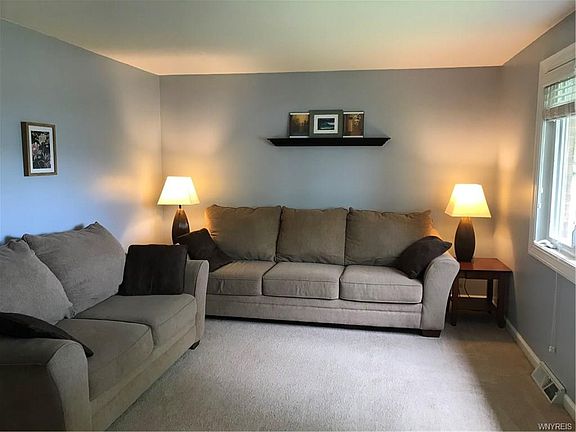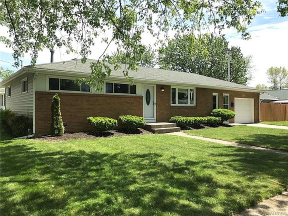 This updated maintenance free home is located in the Depew School district and features 3 spacious bedrooms, 1.5 baths (half bath is shower and toilet located in the dry basement), hardwood floors under carpeting, fully fenced private yard with patio and gorgeous kitchen with plenty of cupboard space and appliances. Updates include furnace with humidifier & A/C, windows, HWT, electrical service & roof (09). Don't miss out on this home! Showings start Sat 6/15 @ 1 and offers reviewed by the seller on Tuesday 6/18 at 6. Star exemption $650.00.