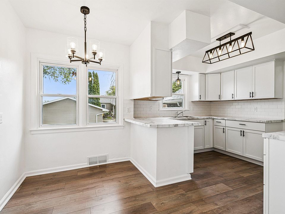 Check out this fully remodeled ranch style home with nothing left to do! All of the work has been done for you in this great home. Walking in the front door you will see an expansive living room with a cozy wood burning fireplace that opens up to the fresh new kitchen. The main floor is spacious and bright and consists of 3 bedrooms and a fully renovated bathroom. Moving downstairs you are greeted by a nice screened in porch that is perfect spot for your morning coffee. As you get to the generous sized basement, there is plenty of room for storage or a home gym before you get to the walkout basement living space with an additional non-conforming bedroom and a 1/2 bath. This home features a new roof in 2024 and a brand new furnace/ac in 2025. Moving outside, a brand new deck looks over a good sized lot along with a detached 2-stall garage. All of the big work is done and ready for it's next owner! You don't want to miss this one!