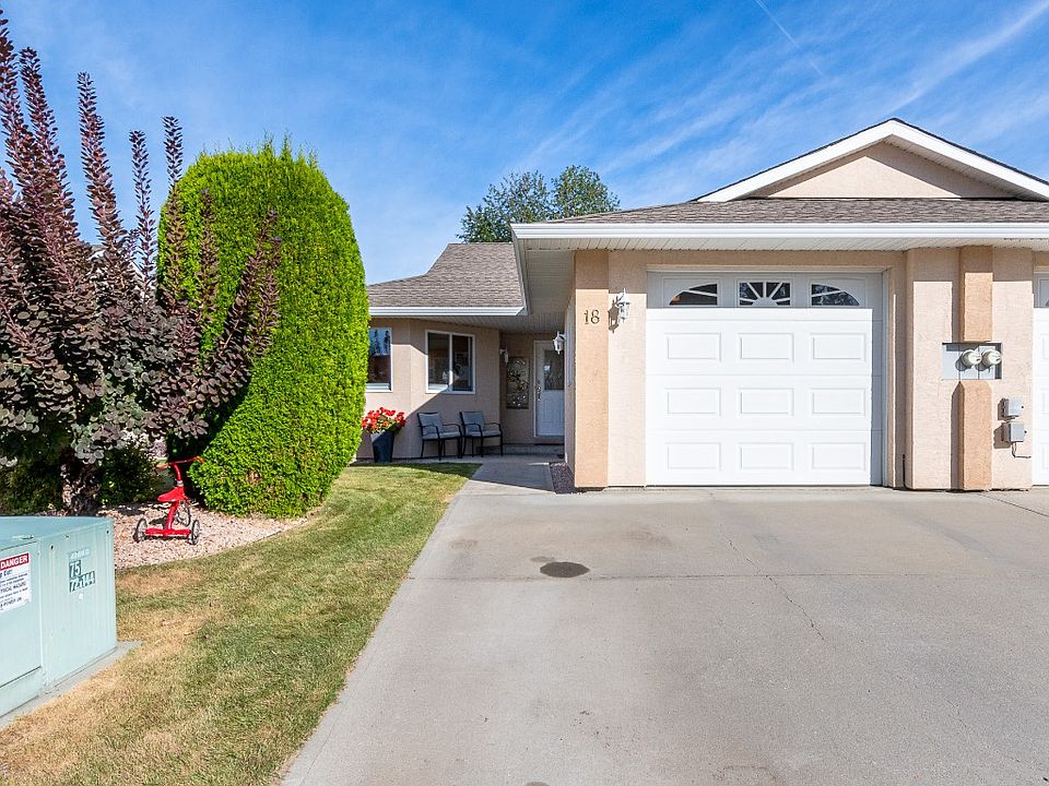 Welcome to Riviera Villas in Enderby — a beautifully maintained townhouse offering 1,257 sq. ft. of comfortable and functional living space. This bright and inviting home features 2 bedrooms and 2 bathrooms on the main level, with another bedroom in the lower level. The main floor showcases laminate flooring throughout, a spacious kitchen with new quartz countertops, stainless steel appliances, and ample cabinetry for storage. Enjoy the convenience of main floor laundry, central air conditioning, and two built-in vacuums—one in the home and one in the garage. The lower level, with a 6.5 ft. ceiling, provides excellent versatility with a workshop, gym area, office space, fully finished bedroom, and plenty of storage. Relax outdoors on the peaceful back deck surrounded by flowers and greenery. Parking includes a single attached garage plus driveway space for two vehicles. This 55+, pet-friendly complex allows one dog or cat (up to 14 inches). Ideally located near the Shuswap River, parks, and the local arena, Riviera Villas offers a low-maintenance lifestyle in a quiet, welcoming community.