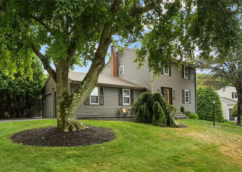 OPEN HOUSE CANCELLED FOR 09/07/24. Welcome home to this beautiful Colonial on corner lot with all of the following renovations completed in the last 6 years: Kitchen boasting quartz countertops, cabinets with soft-close doors, modern appliances, beverage cooler, wine cabinet, convection oven, microwave with cooking and baking capabilities, flat stove accompanied by a potent odor extractor, and kitchen window offering a breathtaking view of the newly constructed concrete patio and pool area surrounded by lush plants, automatic individual drip zone for plants, and an irrigation system for the lawn connected to phone and weather station. Hardwood and laminate floors are present throughout the home. The bathrooms have been nicely remodeled, and the family room features cathedral ceilings, new flooring, and fresh paint throughout, along with sliders leading to the beautiful in-ground pool with a newer liner and multi-speed pool pump, and an outdoor shower, all surrounded by a fence and trees. Additional features include newer vinyl siding, high-quality replacement windows, and screens, as well as a Mini-Split heat pump heating and cooling systems, ideal for heating and cooling, fan, chilling factor, and dehumidifier, all designed for maximum comfort with individually controlled multi-speed units. Furthermore, there are two pellet stoves with electronic ignition.