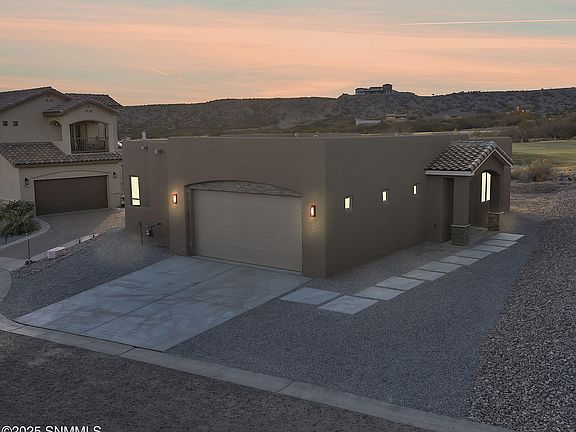 Looking for a lifestyle to relax--yet never get bored? Overlook the Turtleback Resort & Golf course & soak in the desert wildlife & serenity that comes w/living in a gated community in the suburbs of Elephant Butte. Elephant Butte Lake is only 5 minutes away offering all kinds of activities & the TBRG restaurant close by. This luxurious 3 bdm 2 bath home was designed for the most discerning buyer in mind. Beautiful tile flows through the open floorplan of the living, dining & kitchen. Living rm overlooks an opulent fireplace & sunsets out the sliding glass doors. Kitchen w/refrigerator, dishwasher, microwave & 5burner gas range w/convection ovens & air fryers. Granite counters & custom cabinetry in kitchen & bathrooms. Exquisite master suite bathroom w/dual vanity, walkin closet, glass shower w/rain can & beverage bar/frig. Other great features: 2 x 6 construction, Pella(r) windows, tankless H20 heater, 200amp panel for electric cars, hot tub or solar panels. *Virtual pictures were used--furnishings not there.