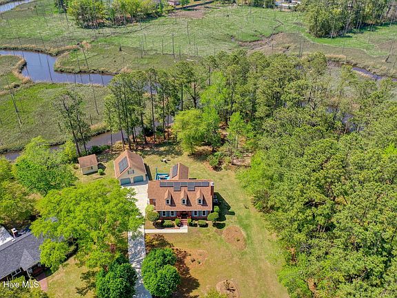 Escape to a serene waterfront oasis in Wilmington's Echo Farms neighborhood, where this stunning 0.91-acre property awaits. The beautiful three-bedroom, two-bathroom home with solar panels, a hot tub, and 20x14 screen porch. A detached garage with storage above and an additional building with electric provide ample storage and flexibility, while the absence of HOA fees allows you the freedom to enjoy your property as you wish. Priced at $550,000, this incredible property is a rare find, approximately 20 minutes from Wrightsville Beach and Carolina Beach, and only minutes from restaurants and shopping. This turn-key marshfront Cape Cod home sits at the end of a cul-de-sac and backs onto Barnards Creek, a lush green tidal marsh with wildlife and breathtaking sunset views. Step into this meticulously maintained retreat where hardwood floors throughout create an easy, clean living space. The beautifully appointed living room flows into a large dining area through glass pocket doors that offer unobstructed views of the marsh and sunsets. The spacious kitchen and eat-in breakfast nook also feature stunning marsh views! French doors lead to a vaulted ceiling screened porch equipped with ceiling fans. The large private yard is perfect for enjoying unparalleled sunsets or listening to the sounds of wildlife in the marsh. With large rooms, the master suite can be located on either the upper or lower level. Additional features include two HVAC units, an external generator hookup to keep the lights and refrigerator running during outages, solar panels that help reduce utility bills, a security system, a well irrigation system, and a fully finished outbuilding with a separate electric meter—ideal for a hobbyist or a man/woman cave. With plenty of closets and storage space, the best part is that you can paddleboard or kayak on the creek right from your own backyard! All of this, and you're still close to shopping, restaurants, and downtown.