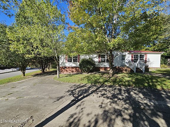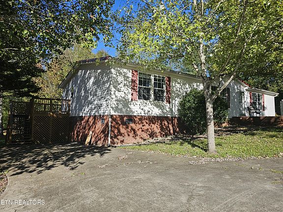 This ranch style home is situated on a beautiful corner lot with circular driveway and permanent foundation. Kitchen includes all appliances with walk in pantry and breakfast bar. Dining room provides ample cabinetry with sliding doors going to huge deck w/deck awning. overlooking backyard. Separate laundry room w/ utility sink and door to side deck. Storage building under deck w/riding lawn mower. Enjoy the electric log fireplace in the living room. Split bedroom plan with master on one end with huge walk in closet and ensuite bath with huge tub and separate shower. Other two spacious bedrooms on the other end, and has a full bath tub shower in the hallway. One car, detached garage/workshop. Offers plenty of parking and storage. Great Air B&B possibilities. Minutes to Windrock, Oak Ridge Oliver Springs and Knoxville.