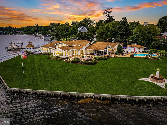 Maryland's local brokerage proudly presents... 201 Long Point Rd! Located on the tip of Long Point on the Severn, across from St. Helena Island, this waterfront estate has become a landmark on the Severn River and is an entertainer’s paradise! Situated on a sprawling 1+ acre flat lot with over 400 feet of direct water frontage, an in-ground pool, and 3 boat lifts; you will enjoy one floor living with gorgeous water views from every window! This stunning 6,278 sq. ft. home features 3 bedrooms and 3.5 baths in the main house, along with an additional 1 bedroom and 1 bath in the semi-attached guest/in-law quarters. With its range of desirable home features, this property is an entertainer's dream. Perfect home for water enthusiasts offering a private deep-water pier with 50 amps of power, along with a boat house and three boat lifts (20K, 10K, and 8K). And there's more - the owner has a permit for two additional pilings to create fourth boat slip/lift. Step inside the massive foyer with soaring 20-foot ceilings, custom built-ins, oversized coat closet, 2-story, double-sided stone gas fireplace, and be captivated by the seamless blend of sophistication and comfort. The Great Room offers unobstructed sight lines to the water, while the light-filled, four- season sunroom features panoramic views of the Severn River. The lovely eat-in kitchen, complete with stainless steel appliances, granite countertops, coffee bar, 2 large pantries, and a center island, is perfect for entertaining. Large dining room w/skylights off the kitchen spills over into the Great Room for a true open-concept design maximizing the scenic vistas of the Severn River from every room in the house. The Primary suite is a true haven of relaxation, with a private deck and gazebo, tray ceilings, window seat, sweeping views of the water, multiple closets, dressing area, and ensuite bathroom. Enjoy two guest bedrooms: one a private suite w/ensuite bathroom. Partially finished basement provides additional living space. On this level is a large laundry room w/ plenty of storage, cedar closet, space for a home gym, workshop and safe room! Off the Kitchen, you will find an expansive covered lanai inviting you to indulge in outdoor living at its best. The huge private back yard with in-ground pool, decorative pond feature, lighthouses and extensive hardscaping/landscaping provides a great place to host lavish parties, a recent family wedding, or simply lounging with loved ones and friends against the picturesque backdrop of the Severn River. Enjoy front row seats for the Sherwood Forest July 3rd spectacular fireworks show. The saltwater, heated pool offers a refreshing oasis on warm summer days, while the oversized 2-car garage with RaceTrack flooring provides ample space for vehicles and storage. This property accommodates parking for 8-10 cars, a rare find in this community. This home has had many major renovations since it’s purchase; increasing bedrooms, dramatically raising ceiling heights, as well as finished square footage. All rooms in the home have ceiling heights ranging from 10 – 20ft. (vaulted/tray). Enjoy endless waterfront activities like boating, fishing, paddleboarding (2 convey), and kayaking. You are perfectly positioned to take advantage of Chesapeake Bay's best cruising and fishing areas, with the option to boat to Annapolis for shopping or dinner. Located on a quiet cul-de-sac in the coveted Long Point on the Severn community, this home provides the perfect balance of seclusion and accessibility. Convenient access to General's Highway, provides quick connections to Annapolis, BWI, Baltimore, DC, and Route 97. Iconic waterfront paradises on the Severn, with too many features to list, rarely become available, so don't miss this opportunity. Schedule your private tour today!