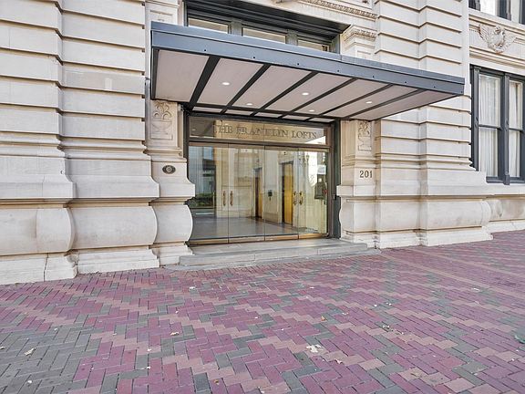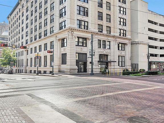 Industrial-style complex in the heart of the Houston Downtown Historical area. Ideal location! Walking distance to parks, theatre district, Metro rail and green space. This building was originally The First National Bank built in the early 1900's. This corner unit boasts walls of windows with an abundance of natural light. Light Oak hardwood floors throughout compliment the concrete ceilings and white walls with brick accents. The open-plan living area adds to the feeling of space and light. Perfect for entertaining! The island kitchen contrasts with dark granite counters and Stainless Steel appliances (all included). Updated track lighting. The bedroom has loads of closet space and a laundry closet with stackable washer and dryer (included). 2 parking spots in prime location near the bridge to the building are included. Main Street is undergoing a beautification project and is planned to become a promenade within the next 6-8 months.