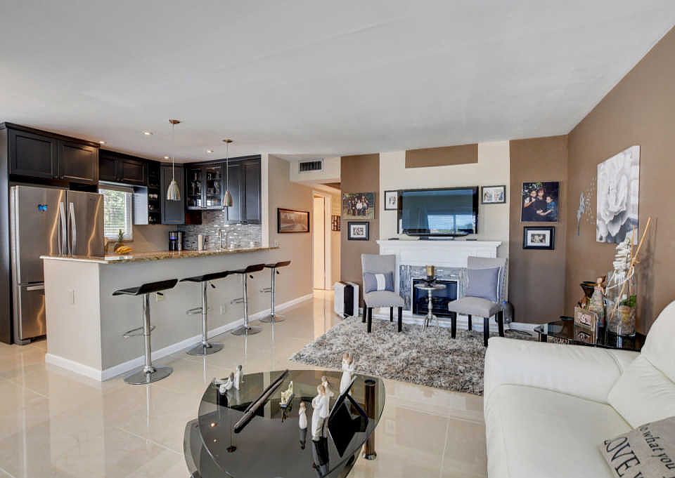 ''Your Oasis Awaits'' Stunning Newly renovated corner condo. This property will not last. Spacious and bright Open kitchen. Boasts upgraded granite counter top. Elegant cabinets, modern tiled backsplash, stainless steel refrigerator. Halo in-duct Air Purifier System. New AC and Water Heater. New electrical panel. IMPACT HURRICANE WINDOWS. PRIVACY WINDOWS and front Glass door. Beautiful Crystal Chandelier. New Blinds and Drapes. California build in closets. Schlage keyless entry. Fireplace and Tile floors throughout main floor. immaculate, Enjoy your meals on the outside extended patio overlooking the calm lake, with beautiful sunsets. Panoramic pool view and lake view.