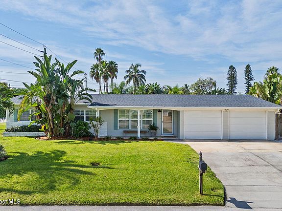 Stunning Beachside Home with Designer Touches Throughout. This immaculate 4BR residence in Indian Harbour Beach offers two spacious living areas for entertaining, relaxing, or dining. The bright, open floor plan creates a peaceful, inviting atmosphere while blending modern updates with timeless craftsmanship. The fully remodeled kitchen features custom cabinetry, a large island, and quartz countertops. Updates include new plumbing (water supply and PVC drains), brand-new A/C (2025), and a roof (2018) with reinforced system featuring peel-and-stick SWR and clips. Both bathrooms are fully renovated with modern finishes. Step outside to a covered entertaining area with pergola, brick pavers, and spa—the perfect setting for gatherings or quiet evenings. The two-car garage, currently outfitted as a workshop, adds flexibility for storage or projects. The separate laundry room offers convenience and extra storage. Hurricane-ready home with wind protection, including hurricane-rated Bahama shutters and new garage doors completing the package. Fully fenced corner lot with storage shed. All this, less than half a mile from the sand and close to Gleason Parkmove in and start the beachside lifestyle!