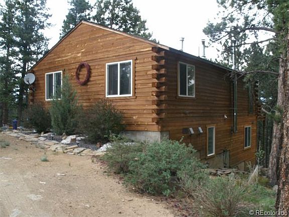 Beautiful log home is move in ready, nicely updated, with a park like setting. Ideal location just minutes to the main highway makes for an easy commute to the metro area that stays pretty consistent year round. This home is at the end of a cul-de-sac and has a quiet, private, nicely treed, gentle lot that is ideal for full time living, or as a second home. Life is good! Whether your on the deck to take in the warmth of the sun and watch the wildlife, reading a good book while listening to the wind in the trees, or plotting your next adventure, you will treasure your time at home. Minutes to area activities including; disc golf, hiking, biking, climbing, skiing, trail riding, and incredible fishing. Gentle easy access with only 2 stop lights to DIA, but you will not want to leave home! Come see it before its gone.