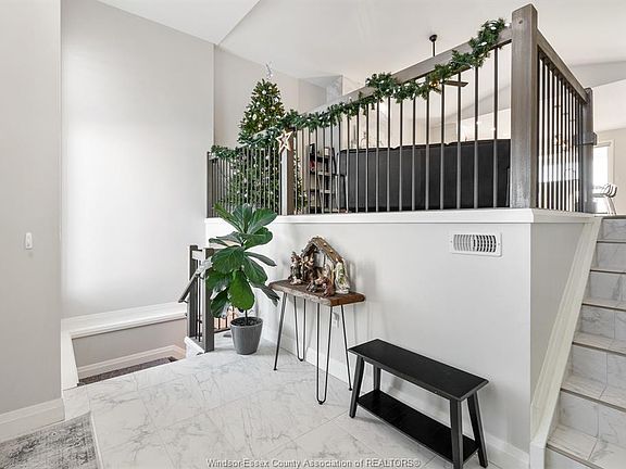 Welcome to 201 Mullen, a true personal oasis in one of Amherstburg’s most family-friendly neighbourhoods. Walk into a large, welcoming foyer and discover a beautifully maintained raised ranch with bonus room, filled with warm natural light throughout. This spacious home offers 5 bedrooms and 3 full bathrooms, with 3 bedrooms on the main floor, 1 in the fully finished basement, and a private primary suite in the upper bonus room complete with walk-in closet and ensuite. The bright main level features open-concept living with a cozy gas fireplace and seamless flow from the kitchen and dining area to the 12x12 covered patio - finished with epoxy for easy maintenance and equipped with a gas BBQ line - along with epoxy on the front step and laundry room. The fully finished lower level adds exceptional living space with a large family room, full bath, and additional bedroom, perfect for guests, extended family, or flexible living. Pride of ownership is evident throughout with many builder and personal upgrades, including a vinyl-fenced yard, irrigation system, and concrete patio and pad under the shed. Thoughtfully designed and move-in ready, this property is prepared for its next chapter. ALL OFFERS TO INCLUDE ATTACHED SCHEDULE B.