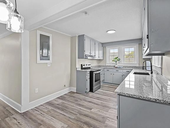 Beautifully renovated 3 bedroom 1 bath home in the heart of Erwin. Large bedrooms with tall ceilings and hardwood floors. LVP flooring in the remaining part of the home. Full bath with ceramic tile, large utility room, eat in kitchen, new appliances, granite counters, privacy fence, carport, new roof and gutters. Conveniently located near shopping and restaurants. Short drive to Campbell University.